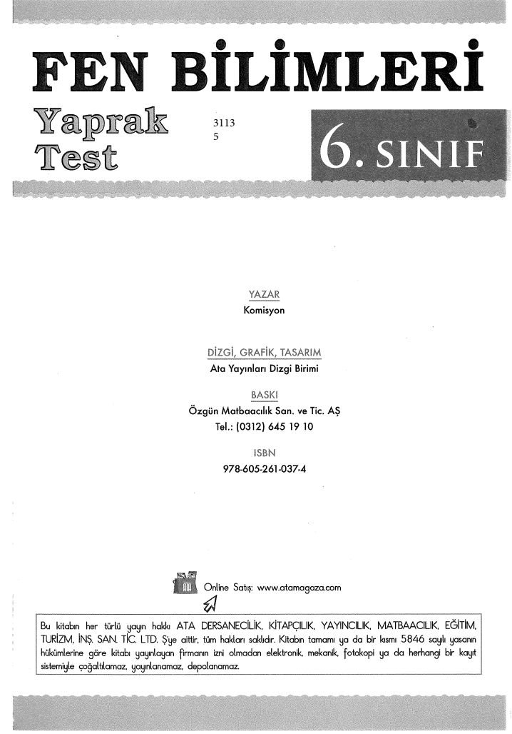 FEN BİLİMLERİ YAPRAK TEST ANKA Fotokopi
