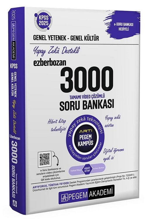 2025 KPSS Genel Yetenek Genel Kültür Ezberbozan 3000 Tamamı Çözümlü Soru Bankası Pegem Akademi